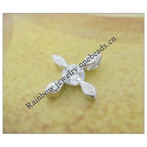 Sterling Silver Pendants platina plating, Cross with Zircon 16x10mm, Sold by PC