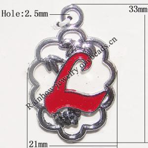 Zinc Alloy Enamel Charm/Pendant with Crystal, Nickel-free & Lead-free, A Grade Shoes 34x10mm, Sold by PC