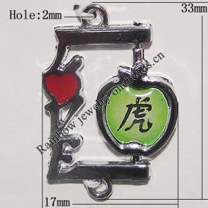 Zinc Alloy Enamel Connecters Letters, 33x17mm Hole:2mm, Sold by Bag