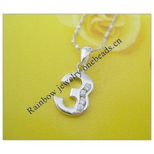 Sterling Silver Pendants platina plating, Alphabet(Letter) with Zircon 18x8mm, Sold by PC