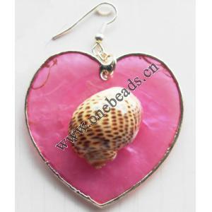 Shell Earring, Heart, 40x55mm, Sold by pair