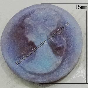 Cameos Resin Beads, No-Hole Jewelry findings, Flat Round 12mm, Sold by Bag
