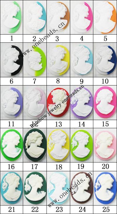 Cameos Resin Beads, No-Hole Jewelry findings, 30x40mm, Sold by Bag