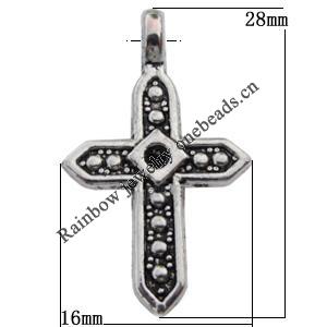 Pendant/Charm, Fashion Zinc Alloy Jewelry Findings, Lead-free, Cross 21x38mm, Sold by Bag