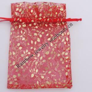 Organza Gift Jewelry Bag, Mixed Color, Golden Flower Pattern, about 11cm wide, 16cm long, Sold by Group