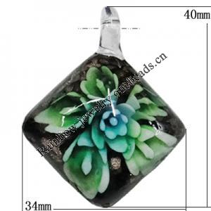 Inner Flower Handmade Gold Sand Lampwork Pendants, Diamond 40x34mm Hole:5mm, Sold by PC