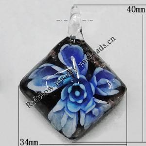 Inner Flower Lampwork Pendant, 40x30x12mm Hole:About 4mm, Sold by PC