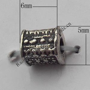 Beads Zinc Alloy Jewelry Findings Lead-free, Drum, 9x8mm Hole:3mm, Sold by Bag