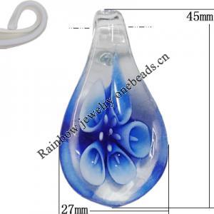 Inner Flower lampwork Pendant, Leaf 27x50x13mm Hole:About 8mm, Sold by PC