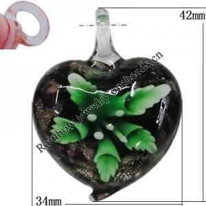 Inner Flower Handmade Lampwork Pendants, Heart 42x34mm Hole:5mm, Sold by PC
