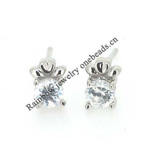 Sterling Silver Earrings platina plating with Zircon, 7x5.6mm, Sold by PC