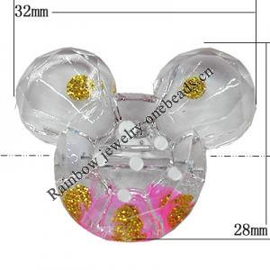 Inner Painted Acrylic Beads, Animal Head 32x28mm Hole:2.5mm, Sold by Bag