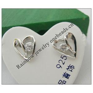 Sterling Silver Earrings platina plating with Zircon, 7x5.5mm, Sold by PC