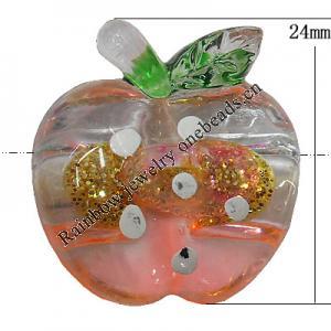 Inner Painted Acrylic Beads, Apple 24mm Hole:3mm, Sold by Bag