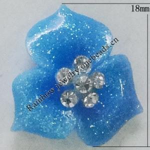 Resin Cabochons, No Hole Headwear & Costume Accessory, Flower with Acrylic Zircon 14mm, Sold by Bag