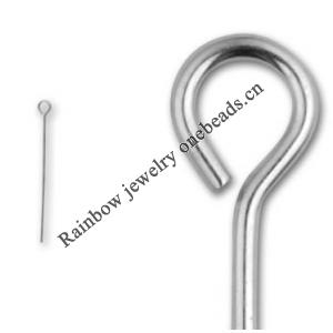 Sterling Silver Eyepin, about 50mm long, 0.6mm thick, hole: about 1.5mm, Sold by PC