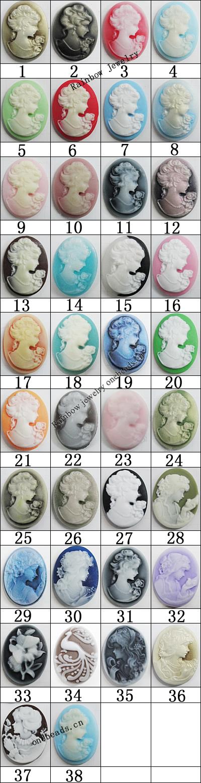 Cameos Resin Beads, Mixed color,A Grade, No-Hole Jewelry findings,39.5x30mm, Sold by PC