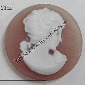 Cameos Resin Beads, No-Hole Jewelry findings, Flat Round, 37mm, Sold by Bag