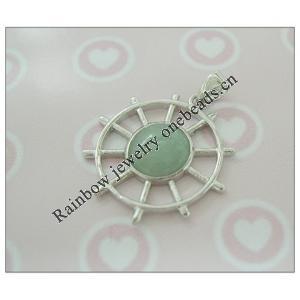 Sterling Silver Pendant/Charm, platina plating with Jade, 30x19mm, Sold by PC