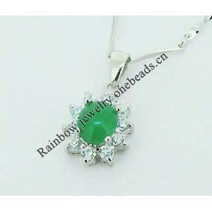 Sterling Silver Pendant/Charm, platina plating with Jade, 33x13mm, Sold by PC