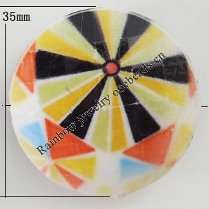 Watermark Acrylic Beads, Flat Oval 33x26mm Hole:2mm, Sold by Bag