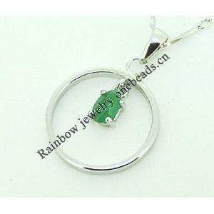 Sterling Silver Pendant/Charm, platina plating with Jade, 39x15mm, Sold by PC