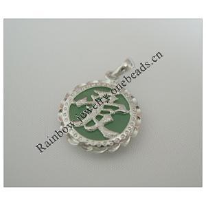 Sterling Silver Pendant/Charm, platina plating with Jade, 31x21.5mm, Sold by PC