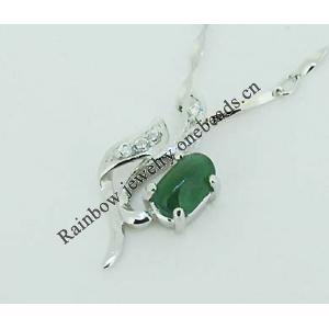 Sterling Silver Pendant/Charm, platina plating with Jade, 22x10mm, Sold by PC
