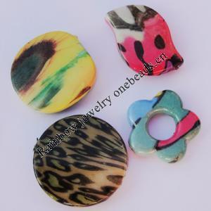 Watermark Acrylic Beads, Mix Style & Mix Color 28mm-47x32mm, Sold by Bag