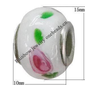 Handmade European Style Lampwork Beads With Platinum Color Copper Core, 15x10mm Hole:5mm, Sold by PC
