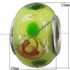 Handmade European Style Lampwork Beads With Platinum Color Copper Core, 10x15mm Hole:5mm, Sold by PC
