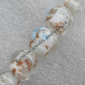 Inner Flower Handmade Lampwork Gold Sand Beads, Flat Round 20mm Hole:1mm, Sold by PC