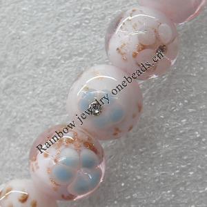 Gold Sand Lampwork Beads, Round 20mm Hole: About 2mm, Sold by PC