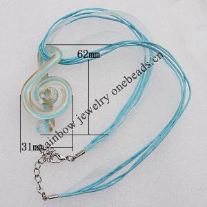 17-inch Lampwork Necklace, Wax Cord & Organza Ribbon Transparent & Iron Clasp Hasp & Lampwork Pendant Sold by Group
