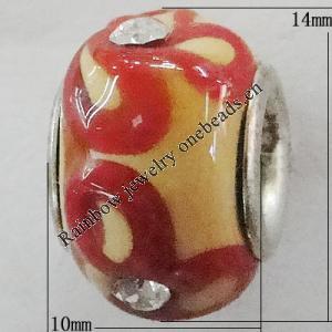 Handmade European Style Lampwork Beads With Silver Color Copper Core, 10x14mm Hole:5mm, Sold by PC