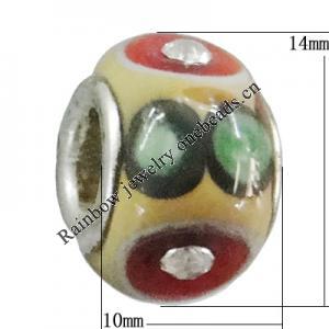 Handmade European Style Lampwork Beads With Platinum Color Copper Core, 10x15mm Hole:5mm, Sold by PC