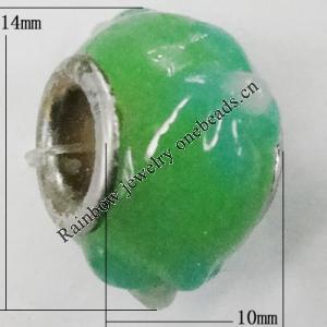Handmade European Style Lampwork Beads With Platinum Color Copper Core, 10x15mm Hole:5mm, Sold by PC