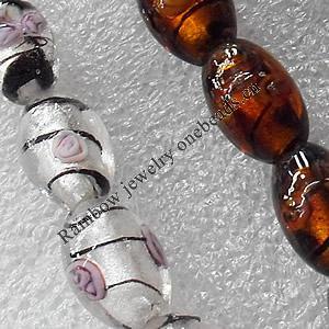 Plate Colorized Silver Foil Lampwork Beads, Mix Color, Oval 8x10mm Hole: About 1.5mm, Sold by Group