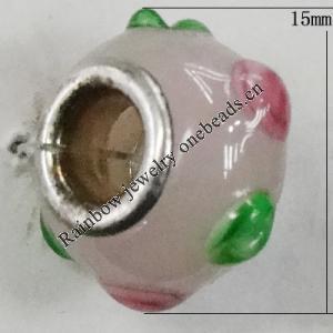 Handmade European Style Lampwork Beads With Platinum Color Copper Core, 15x10mm Hole:5mm, Sold by PC