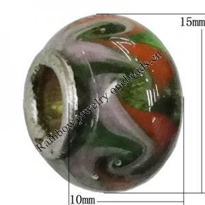 Handmade European Style Lampwork Beads With Platinum Color Copper Core, 15x10mm Hole:5mm, Sold by PC
