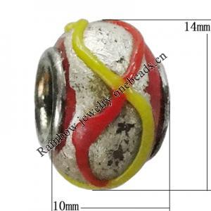 Handmade European Style Lampwork Beads With Silver Color Copper Core, 10x14mm Hole:5mm, Sold by PC