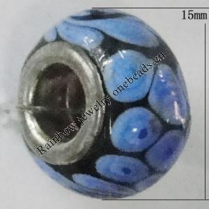 Handmade European Style Lampwork Beads With Platinum Color Copper Core, 15x10mm Hole:5mm, Sold by PC