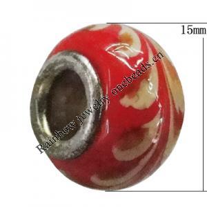 Handmade European Style Lampwork Beads With Platinum Color Copper Core, 15x10mm Hole:5mm, Sold by PC