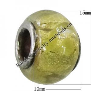 Handmade European Style Lampwork Beads With Platinum Color Copper Core, 10x15mm Hole:5mm, Sold by PC