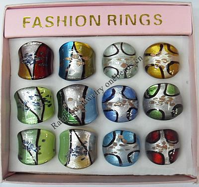 Lampwork Glass Rings,Mix Color, Box Size: 130x90x35mm, Sold by Box