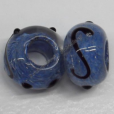 Handmade European Style Lampwork Beads With Platinum Color Copper Core, 15x10mm Hole:5mm, Sold by PC