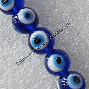 Turkish Handmade Lampwork Glass Evil Eye Beads, Round 10mm Hole: About 1.5mm, Sold by PC