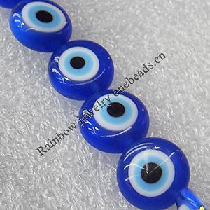 Turkish Handmade Lampwork Glass Evil Eye Beads, Flat Round 15mm Hole: About 1.5mm, Sold by PC