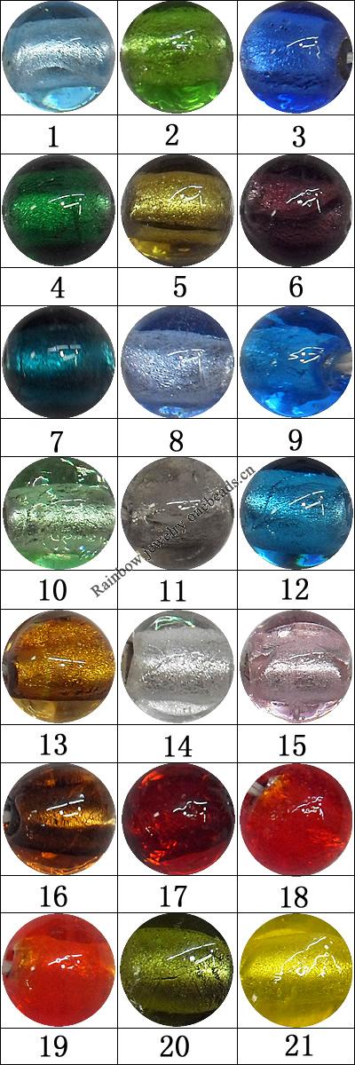 Silver Foil Lampwork Beads, Round 16mm Hole: About 1.5mm, Sold by PC