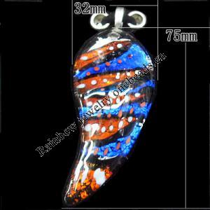 Murano Lampwork Pendant with Metal Alloy Head, Rectangle 64x20mm Hole:7x4mm, Sold by PC